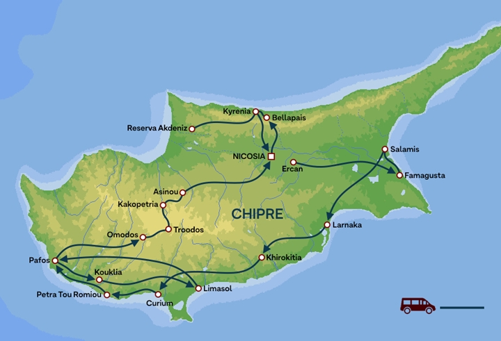 | 3 | Lárnaca - Khirokitia - Curium - Petra tou Romiou - Pafos | D | Hotel |