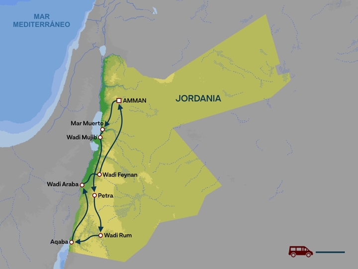 | 7 | Wadi Feynan - Dana - Ruta de los Reyes - Amman | D | Hotel |