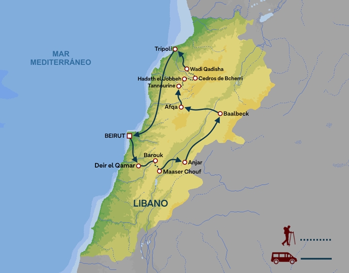 Todos los trekkings en Líbano pueden variar la ruta, y eventualmente hacerla más fácil, en función de la climatología, la abundancia de nieve o el acuerdo de los componentes del grupo y siempre bajo el criterio del guía de trekking responsable de la ruta.