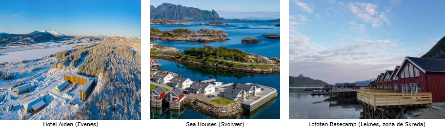 El Hotel Aiden está situado estratégicamente a tan solo 2 minutos del aeropuerto de Evenes. Es un hotel de diseño contemporáneo y estilo "smart" con habitaciones funcionales que ofrecen vistas al entorno natural. Su ubicación, alejada de núcleos urbanos, favorece la observación de auroras boreales en caso de condiciones favorables. La cercanía al aeropuerto permite optimizar los traslados y facilitar la logística del viaje.