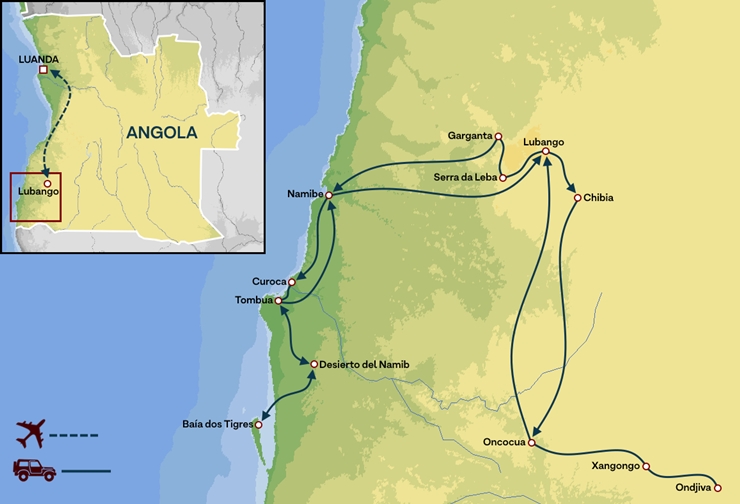 | 9 | Namibe - Cañón de Curoca - Tombua - Desierto del Namib | D-A-C | Acampada |