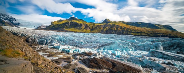Desayuno. La ruta de hoy se inicia en la lengua glaciar de Svínafellsjökull, un impresionante frente helado que ofrece una de las imágenes más impactantes del sur de Islandia. Poco después, atravesaremos el vasto campo de lava de Eldhraun, uno de los más extensos del mundo, cubierto por un manto de musgo que le confiere un aspecto casi irreal.