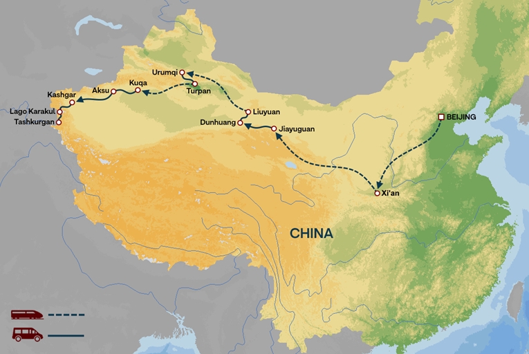 Un viaje extraordinario por la antigua Ruta de la Seda de China, desde la emblemática Gran Muralla de Pekín y los Guerreros de Terracota de Xi'an hasta los paisajes desérticos de Dunhuang y los oasis de Turfán. La ruta continúa por Kuqa y Aksu hasta la legendaria ciudad de Kashgar, revelando siglos de historia, cultura y paisajes impresionantes.