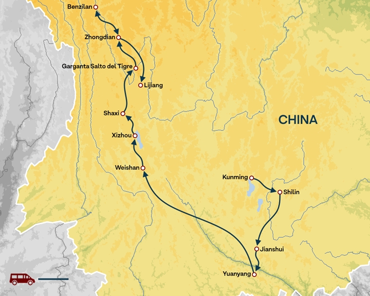 | 11 | Shaxi - Garganta Salto del Tigre - Zhongdian (Shangri-La) | D-A | Hotel |