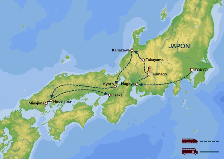 El guía nos ayudará con la activación del Japan Rail Pass, que nos servirá para movernos libremente por Japón durante los días que dure nuestra estancia. Siempre que sea posible, se hará también la reserva de asientos de los trenes que vamos a utilizar durante el recorrido.