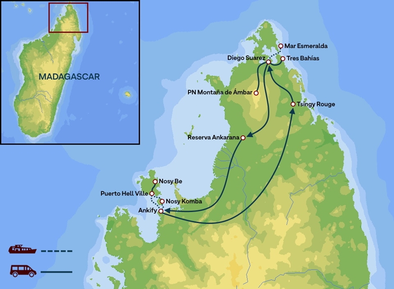 | 3 | Nosy Be - Ankify - Tsingys Rojos - Diego Suarez | D-C | Hotel |