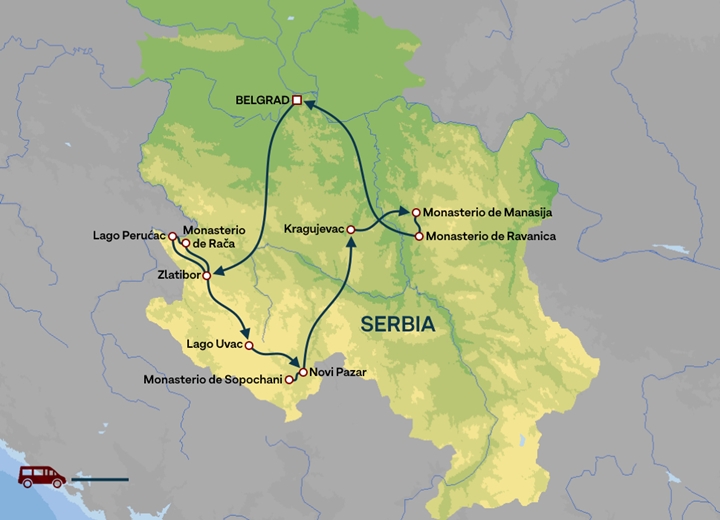 En esta ruta, conoceremos lo más importante de Serbia, su moderna capital Belgrado y también disfrutaremos del corazón histórico serbio y conoceremos las montañas de Zlatibor y Tara y monasterios medievales como Sopocani y Djurdjevi Stupovi, Patrimonio de la Humanidad por la UNESCO.