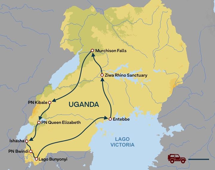 | 4 | PN Murchison Falls - PN Kibale | D-A-C | Lodge |